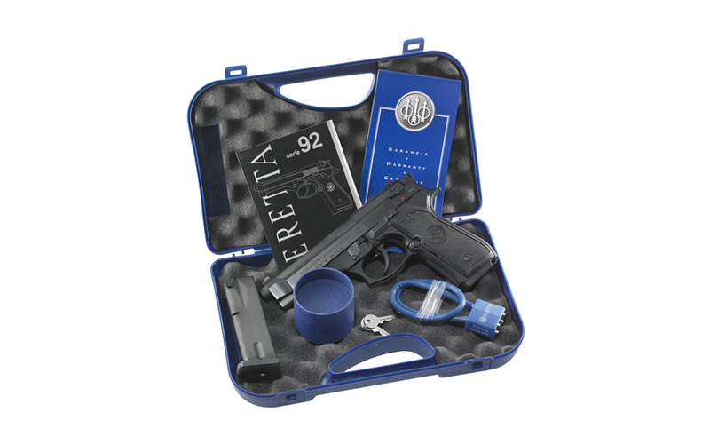 This pistol offers a variety of tactical features that make it equally safe, easy to use and dependable in the holster of military personnel as well as for home or personal defense. Its reversible magazine release lets you use either hand for tactical magazine changes, while its ambidextrous safety-decocker makes it flexible for right- or left-handed persons or for shooters trying out different gripping or shooting styles. Its Bruniton finish is highly resistant to sweat and corrosion, and after shooting, a tool-free disassembly latch makes it a snap to take the pistol apart for cleaning. These and countless other useful features make the 92FS the choice of military and police professionals all over the world, as well as individuals wanting the absolute best for sport or self-protection.