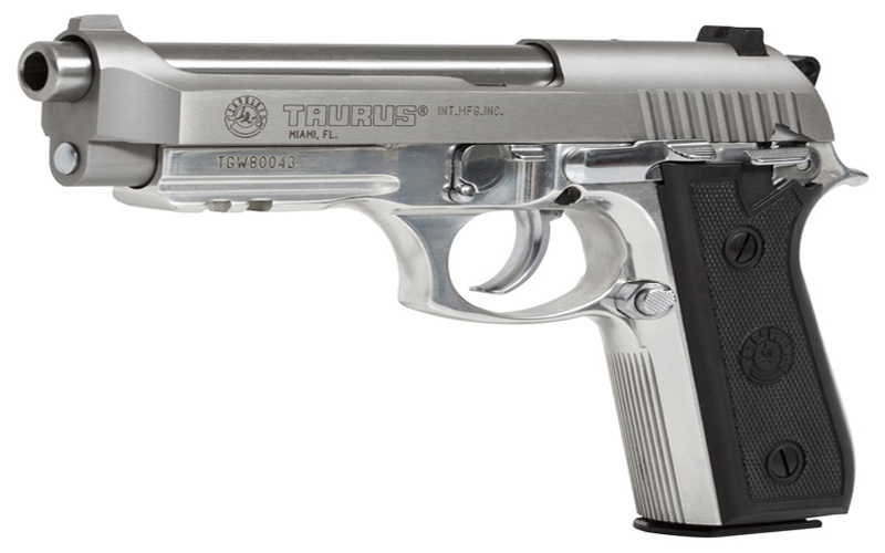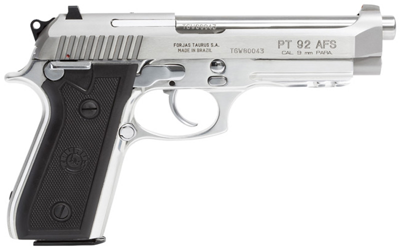 In 1980, we purchased the Beretta factory in Sao Paulo, Brazil “lock, stock and barrel” and immediately sought to improve on the Beretta design, resulting in the popular and acclaimed Taurus 92. Always looking to raise the bar, we’ve taken this year’s models a step further than they’ve ever been. Most notable is Taurus’ specially designed drop hammer forged ordnance grade alloy frame that won’t crack or allow the slide to come off. Other innovations include a three-position frame-mounted ambidextrous safety, which is more secure than a slide mounted safety, and allows for a classic SA “cocked-and-locked” mode, as well as functioning as a DA decocking lever. Available in fixed sight model 92 you’ll be able to face any situation without compromise.