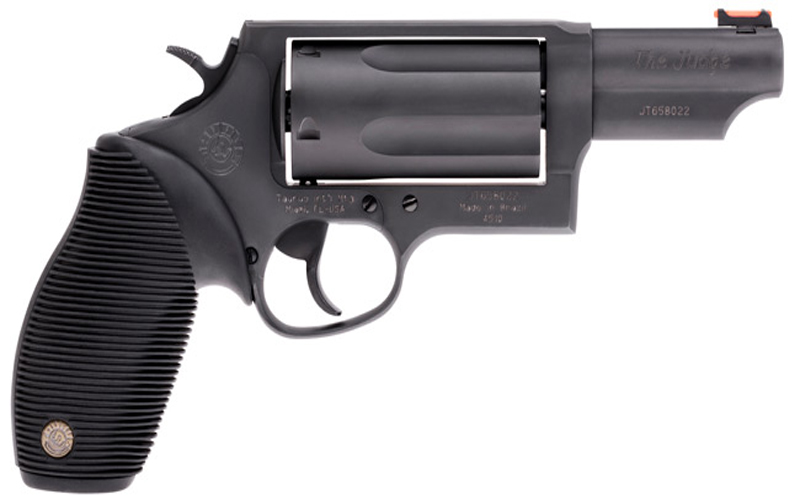 What a name! It’s based on the fact that many judges are now carrying it into the courtroom with them-and for good reason. We know of no better self-defense firearm. Whether loading all 45s-all .410s or alternating them in the cylinder, the Judge is the ultimate shotgun/revolver duo. New for 2008, we’re giving you the Judge in Ultra-Lite forged alloy. You’ll be amazed how light this gun is and how easy it is to tote around. Also new is the Judge 3″ Magnum. Larger and more powerful, this Judge gives you the extra firepower you need when you have to lay down the law.